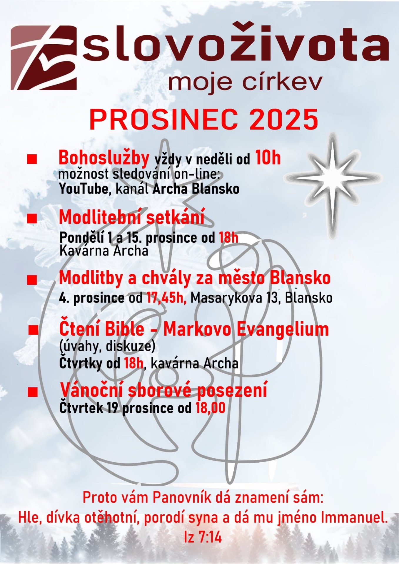 Společné studium Bible, zamýšlení se nad Božím slovem, diskuze a modlitby. Čteme knihu Marek. (27.11., 11.12.)